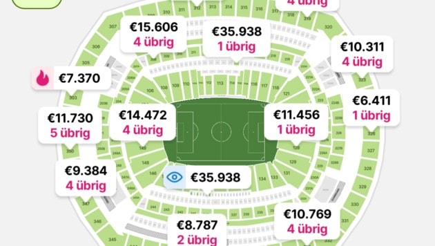 So bietet Viagogo Endspiel-Karten zwischen 6411 und 44.159 Euro an – die teuersten Tickets über die offizielle FIFA-Verkaufsstelle kosten hingegen „nur“ 6370 US-Dollar, was aktuell 5463 Euro entspricht.